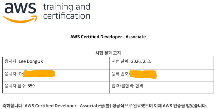 그래서 여기 저기 다른 팀들한테 물어보고.. 또 Docker 관련 인터넷 강의도 봐 보면서 정말 간단하고 보안을 신경 쓰지 않은 시스템 아키텍처를 구성했었다. 이후 다른 팀의 시스템 아키텍처를 보면서 나도 저런 아키텍처를 만들어 보고 싶고 또 Docker와 우리가 만든 서버를 직접 배포해 보니 내 Application이 인터넷에 배포되고 다른 사람들이 서비스를 이용한다는 게 너무 재밌었다. 그래서 안정적인 운영도 하고 싶고 , 클라우드 공부도 필요할 것 도 많이 느껴서 공부도 하면서 자격증도 따면 좋을 것 같아서 응시했다