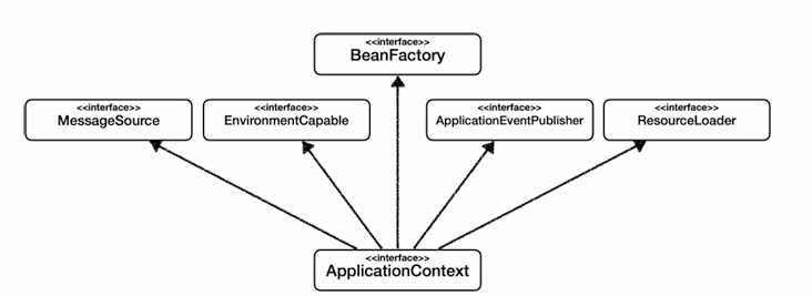 그림을 보면 ApplicationContext 인터페이스는 다른 인터페이스를 상속하고 있다