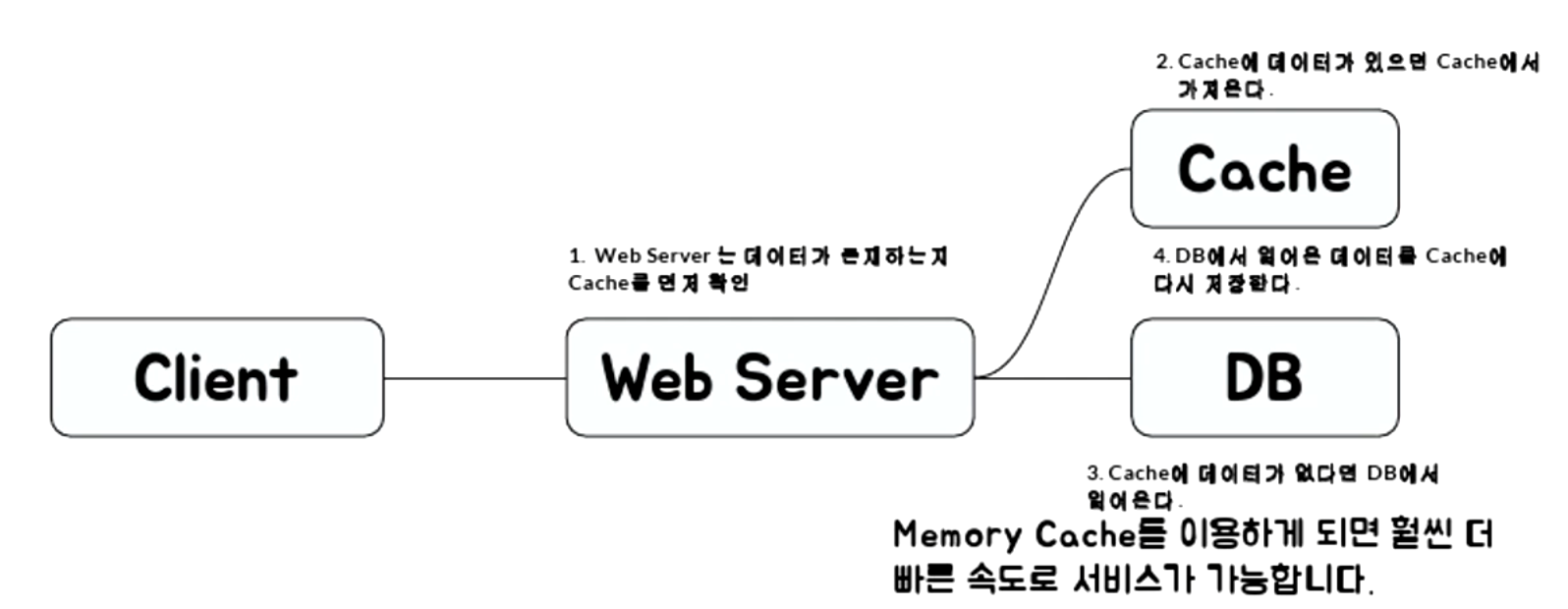 - DB에서 얻어온 데이터는 Cache에 저장하고 응답으로 내보낸다